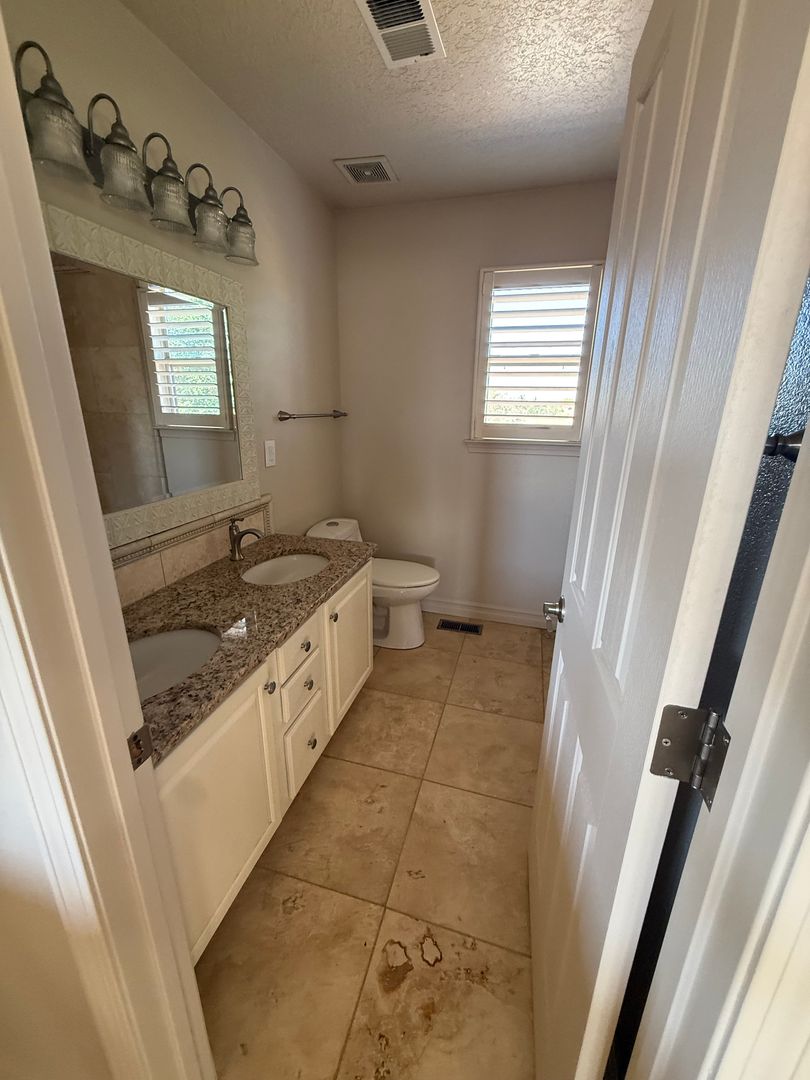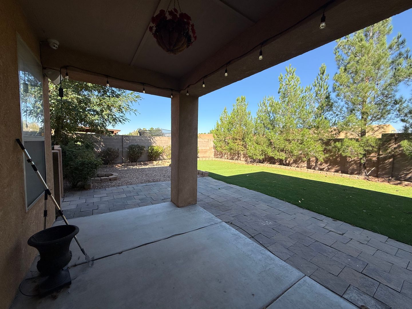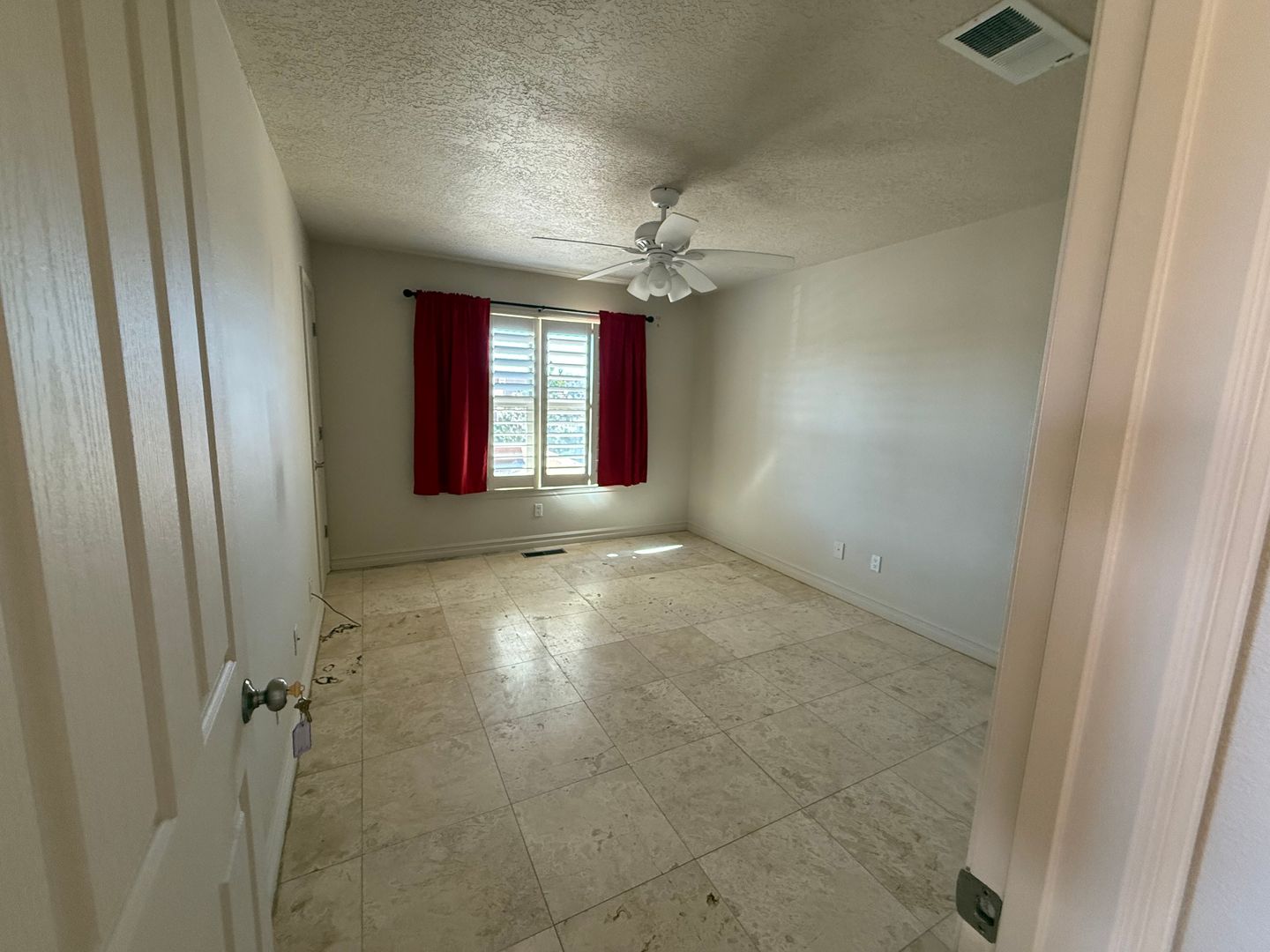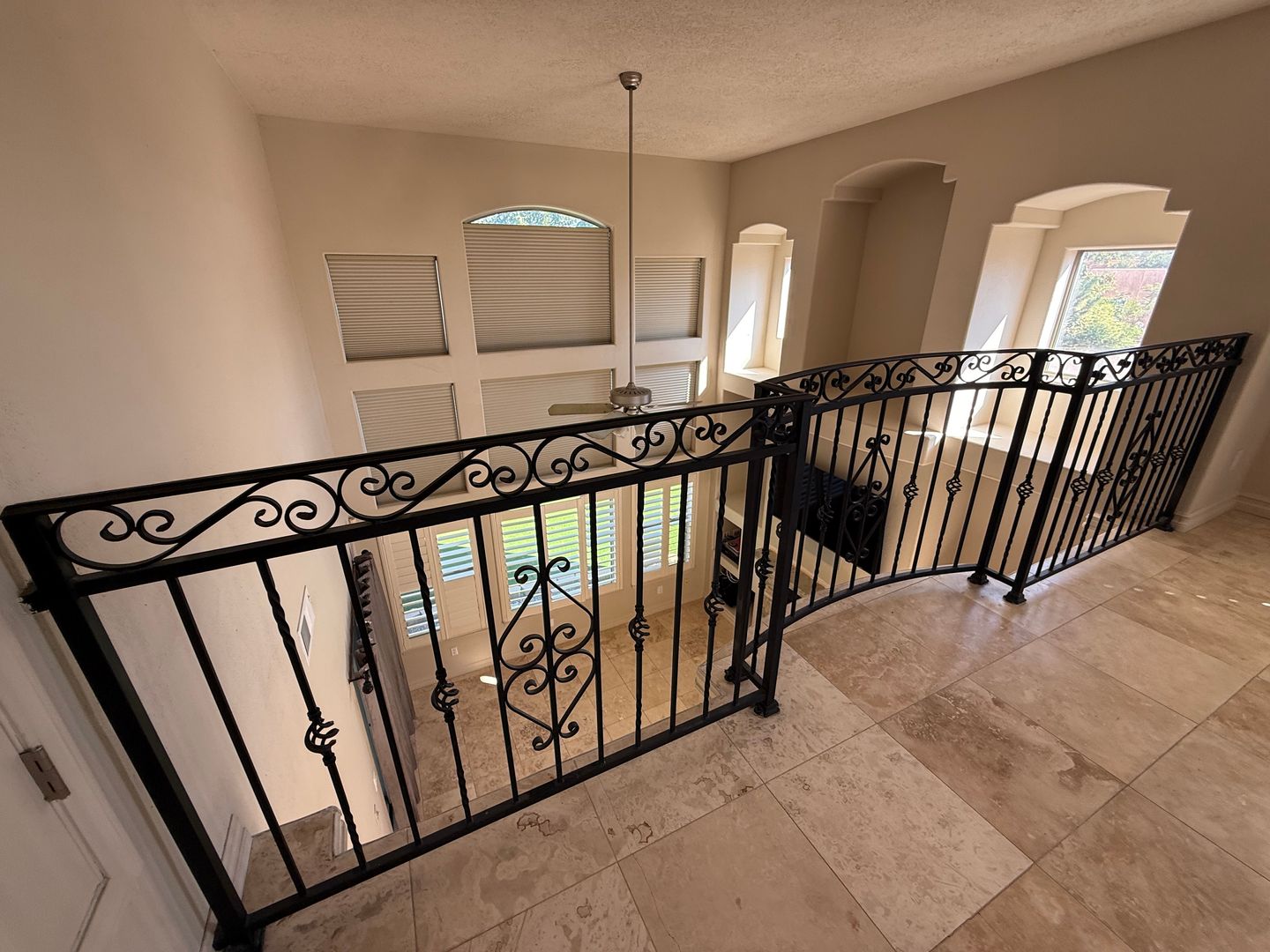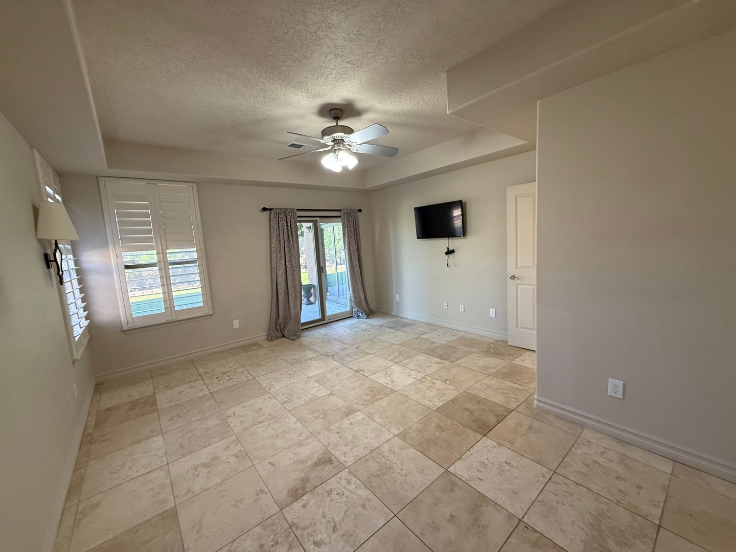 This home offers 2,105 square feet of living space, featuring 3 bedrooms and 3 bathrooms. Notable amenities include tile flooring throughout, a beautiful wrought iron staircase leading to an upstairs loft, and granite countertops in both the kitchen and bathrooms. The outdoor area is equipped with turf. There is a separate formal dining area, and the living room offers a custom gas fireplace and raised ceilings. The primary suite is located on the first floor and includes a private bath with a large vanity, a garden tub, a walk-in shower, and a walk-in closet. Two guest bedrooms are also located upstairs.
