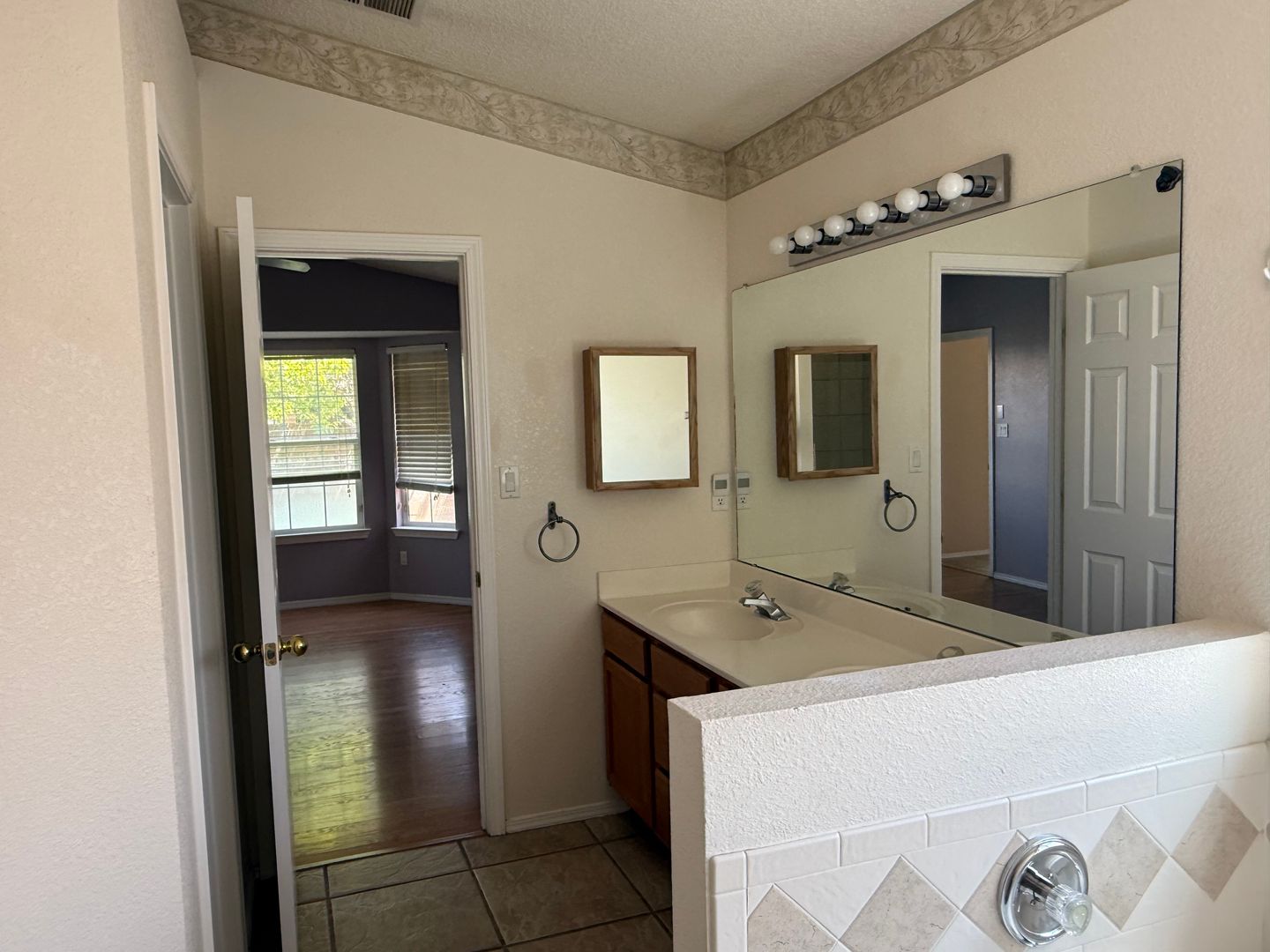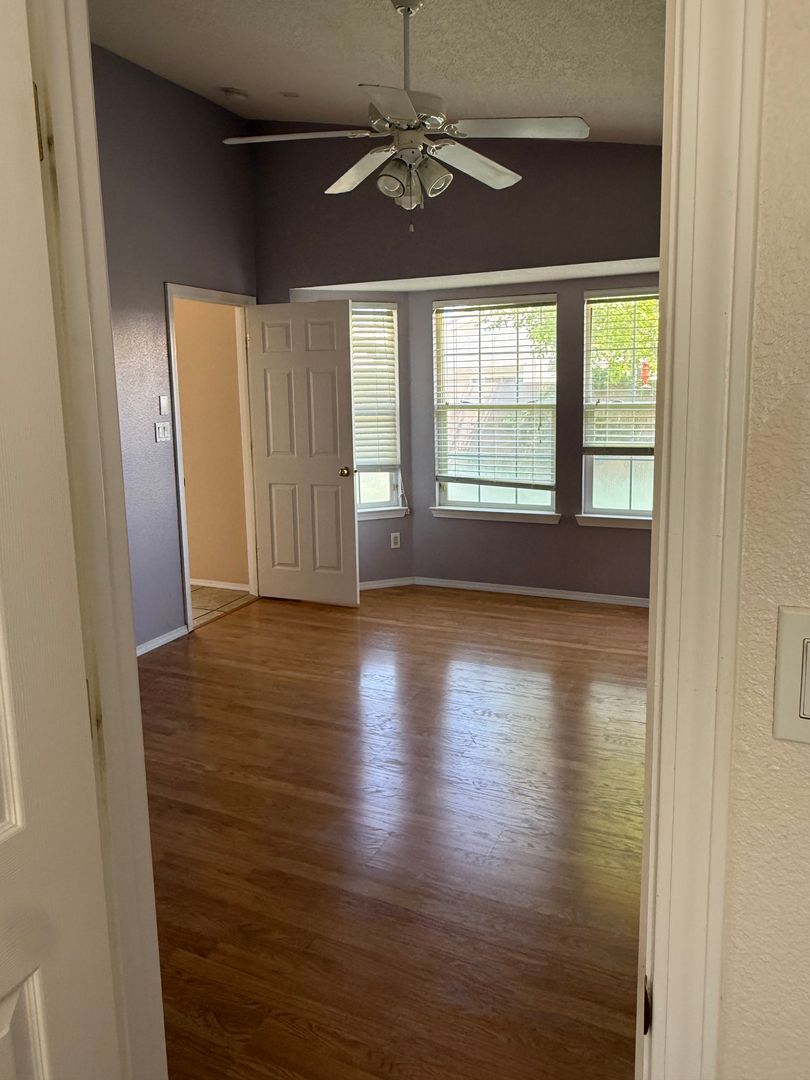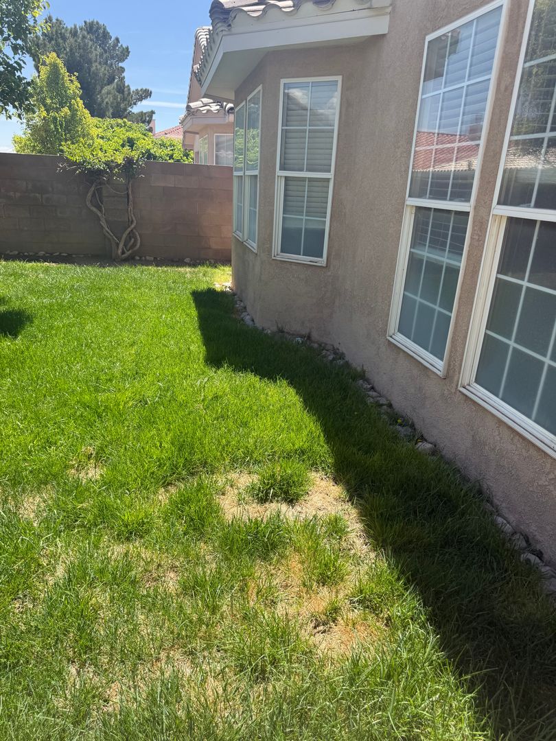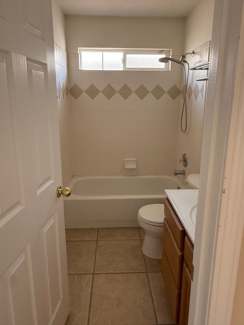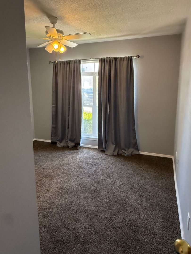 3BR / 2BA home with a 2-car garage, fireplace, and stainless-steel appliances. Features include a dining room, living room, and dedicated office space. Tile flooring throughout with carpeted bedrooms for comfort. The backyard has grass, and the front yard is landscaped, offering great curb appeal.